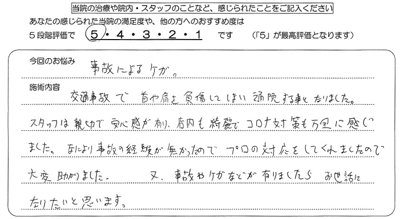 当院ではケガに対するケアはもちろんのこと、事故に遭われた方が抱えるたくさんのお悩みポイントについても解決へのアドバイスとなるよう、より多くの方へ情報を提供できるようにこのサイトをご用意させていただきました。